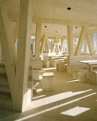 Sa construction a pu être réalisée avec le soutien de nombreux sponsors et donateurs. C’est probablement la construction en bois la plus complexe jamais réalisé en Suisse. Ce bâtiment revêtu de plaques d’aluminium le fait ressembler à un cristal de roche mettant en œuvre des techniques complètement nouvelles et ouvrant de nouvelles perspectives en matière de gestion énergétique du bâtiment.